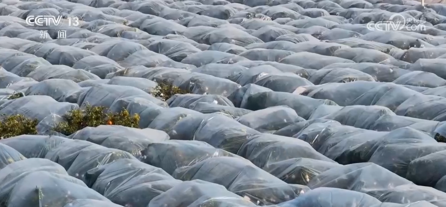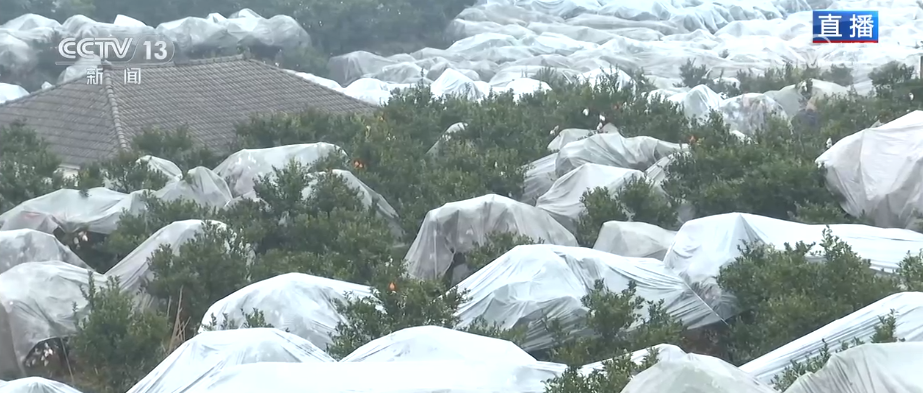 这里是四川一个柑橘飘香的地方成都市的蒲江县,这里位于成都平原向邛崃山系的过渡地带。时隔两年,这次有新的发现,这当中也蕴含着当地柑橘产业高质量发展的一些新密码。村民们把一颗颗的柑橘树用塑料薄膜包裹住,大一点的果树单独被包裹、覆盖,小一点的柑橘树两三颗包在一起,鳞次栉比、连绵开去。柑橘整株覆膜保温 为大地披上冬衣